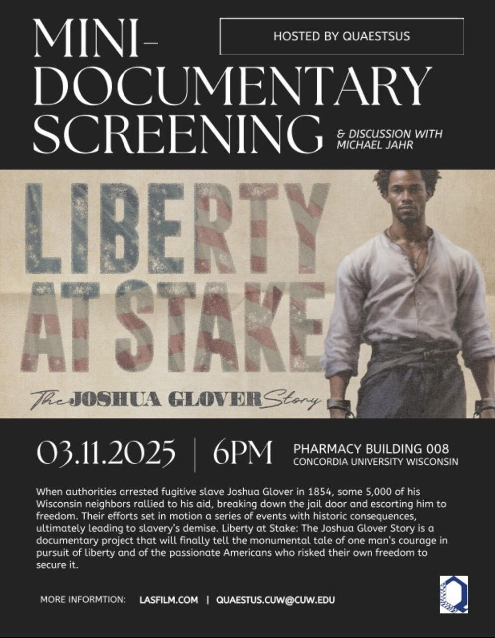 •Filmmaker Q&A: Meet Michael Jahr, director and producer of Liberty at Stake: The Joshua Glover Story as he shares the vision for a full-length documentary and takes your questions.